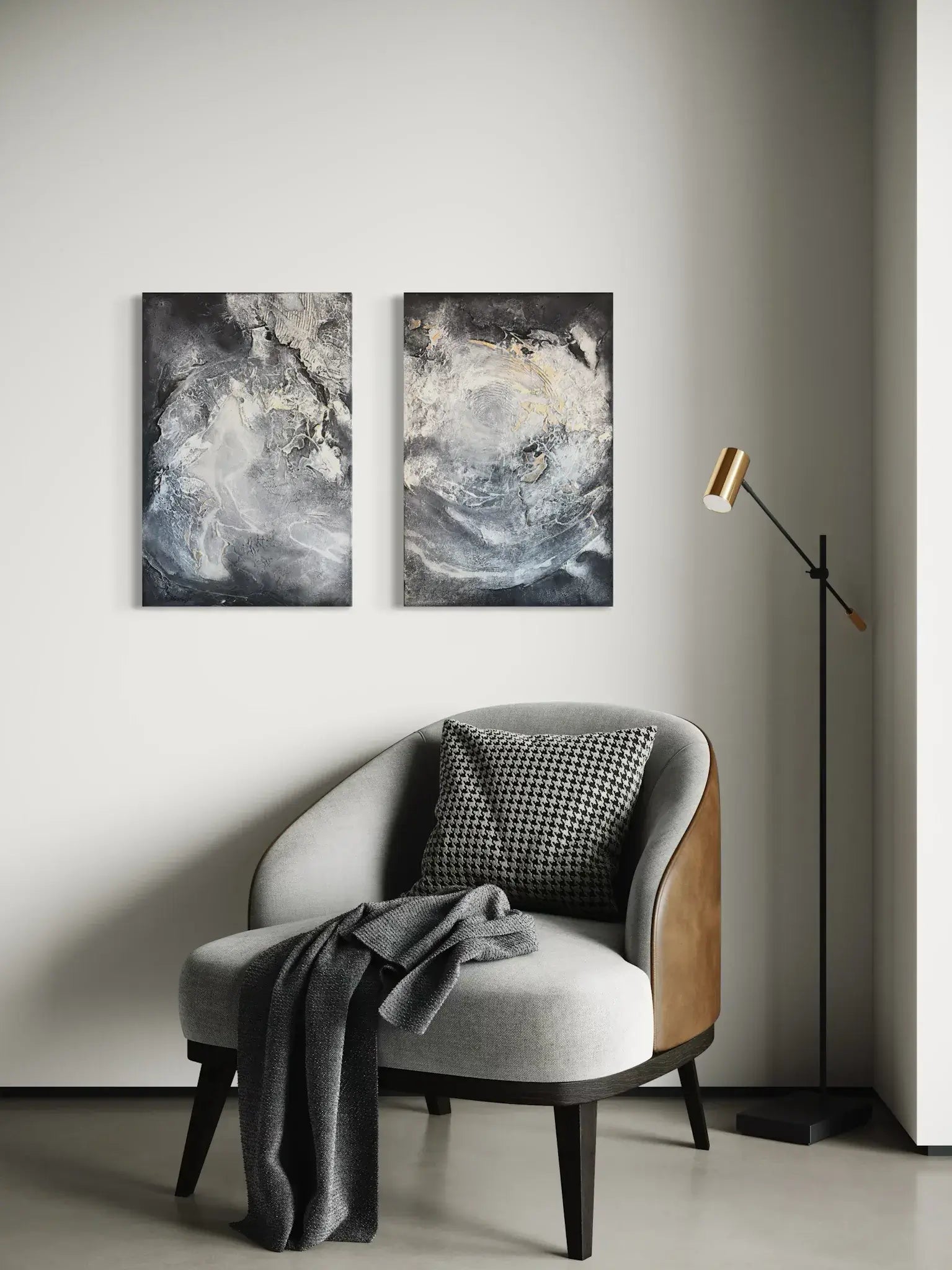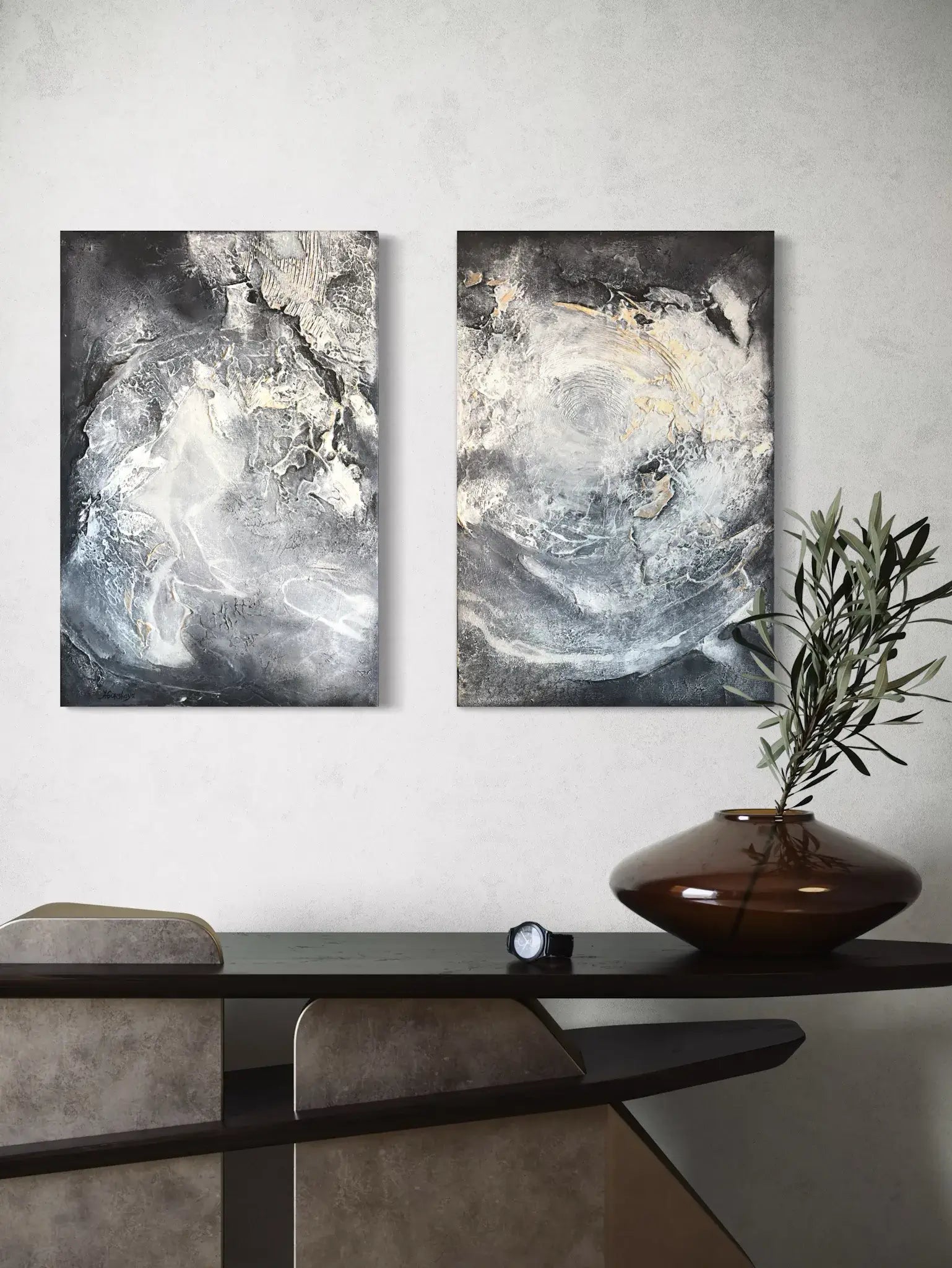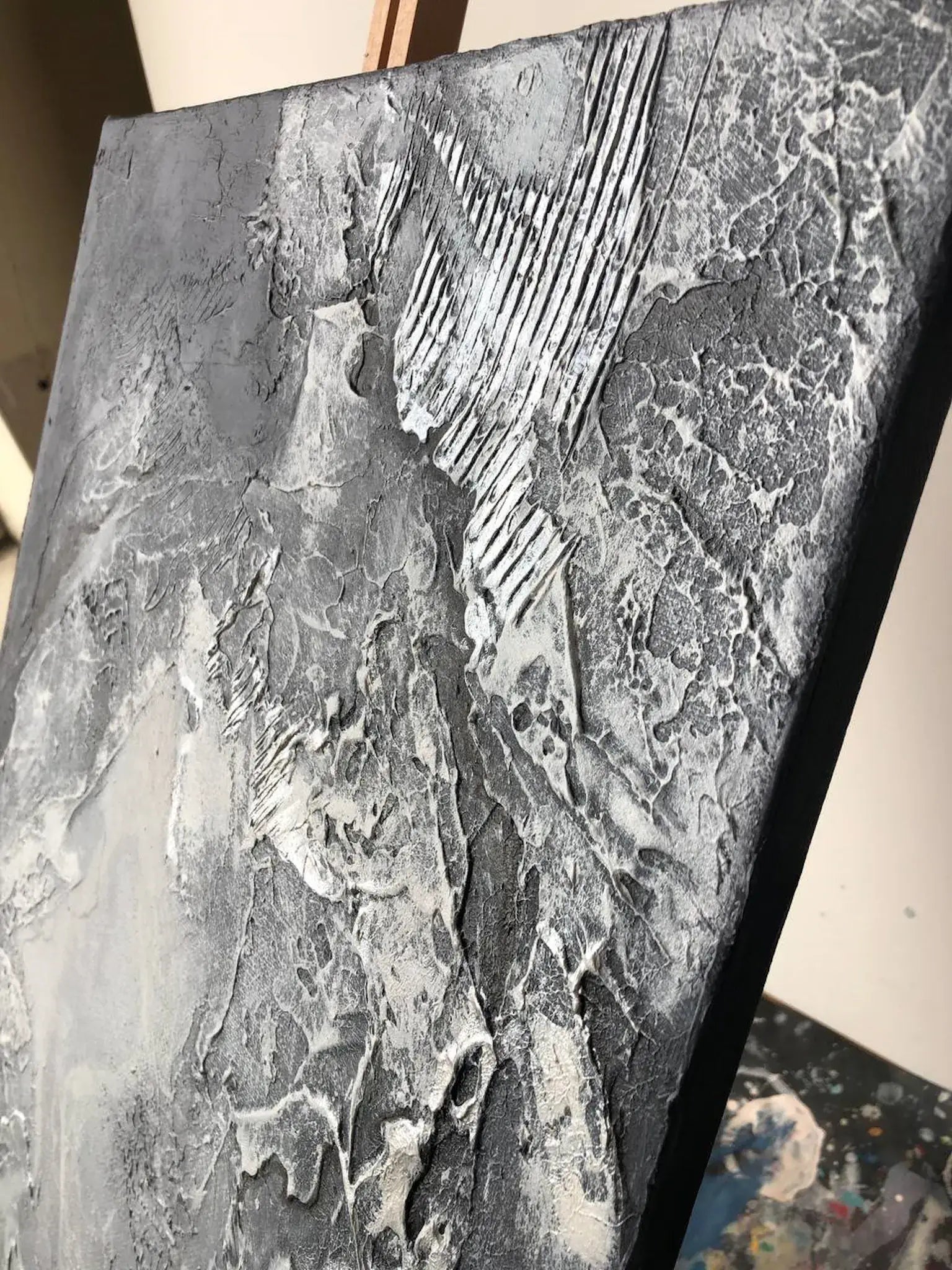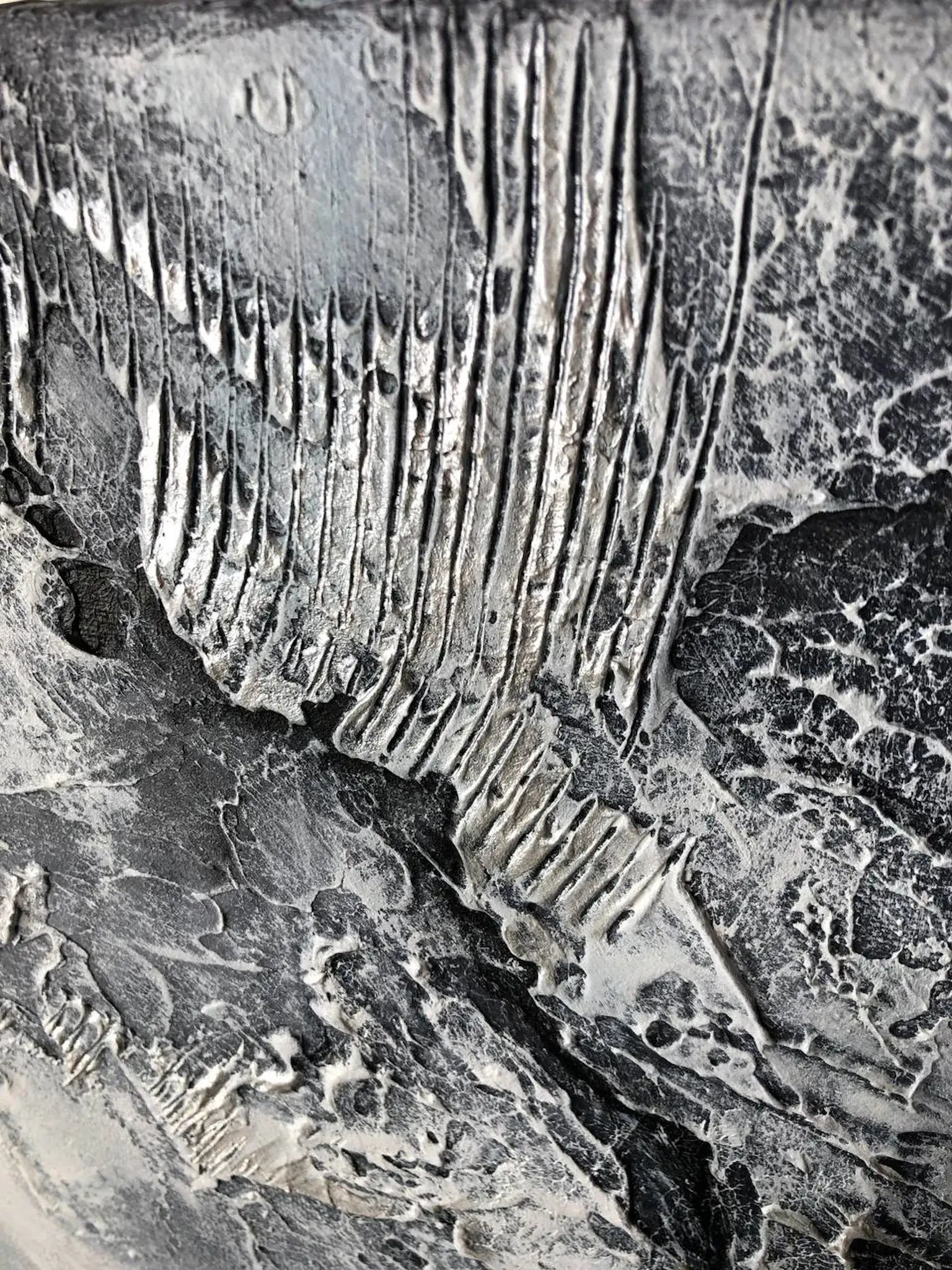 • Leinwand, Acryl, Struktur, Details in Silbereffekt, Schutzlack