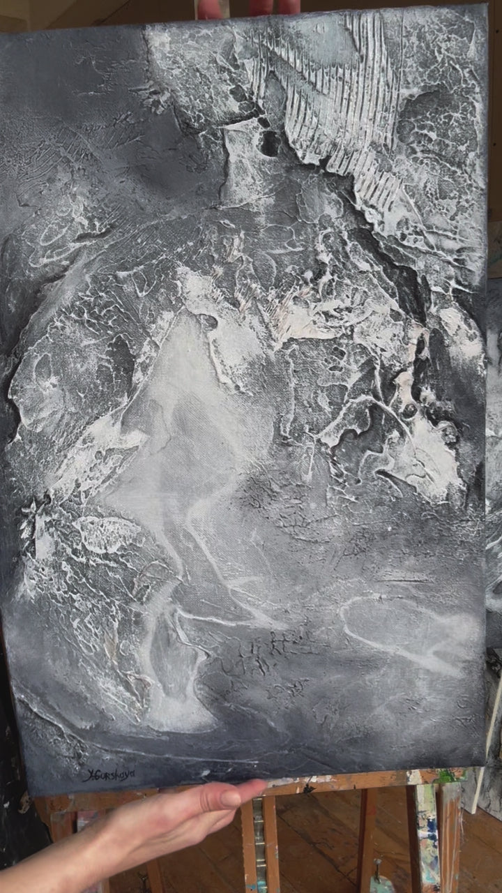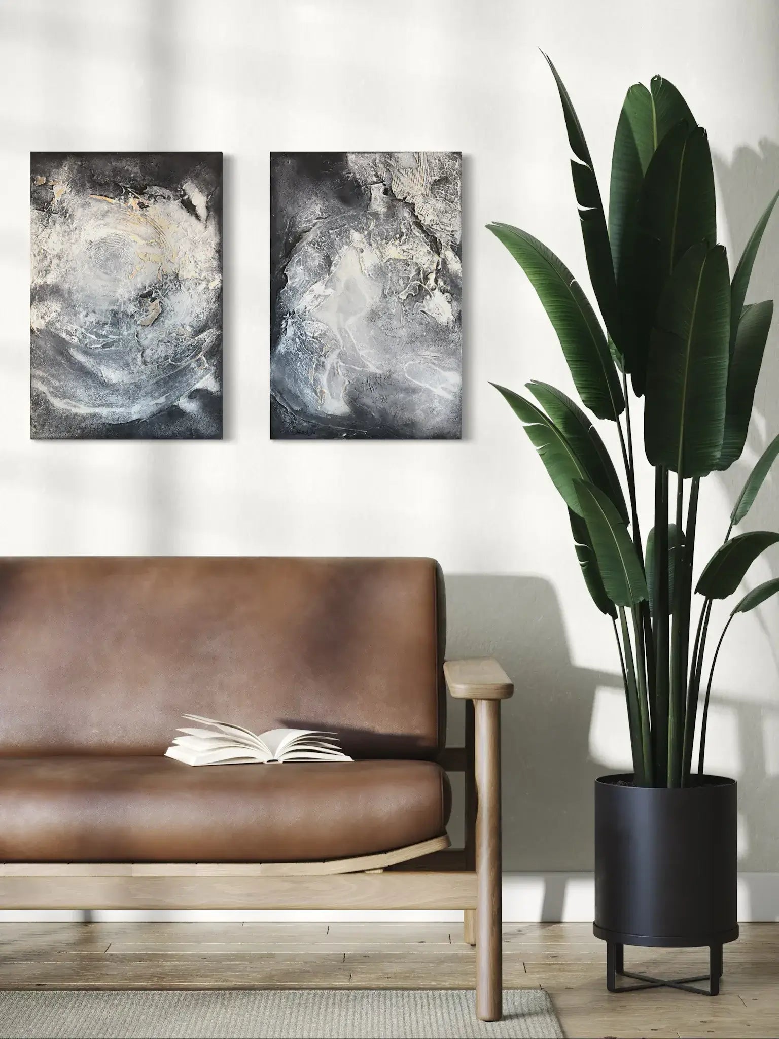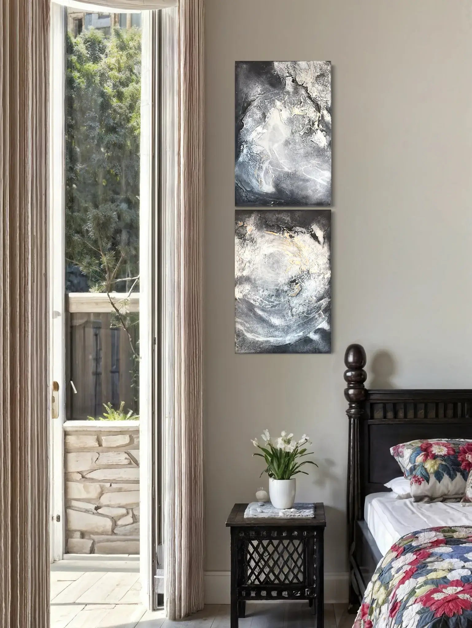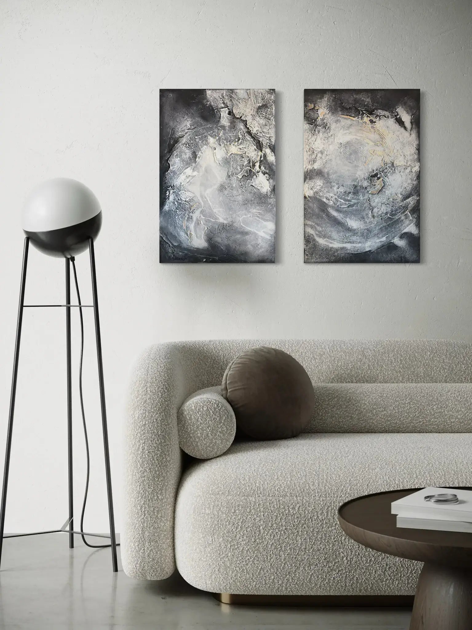 • Leinwand, Acryl, Struktur, Details in Silbereffekt, Schutzlack
