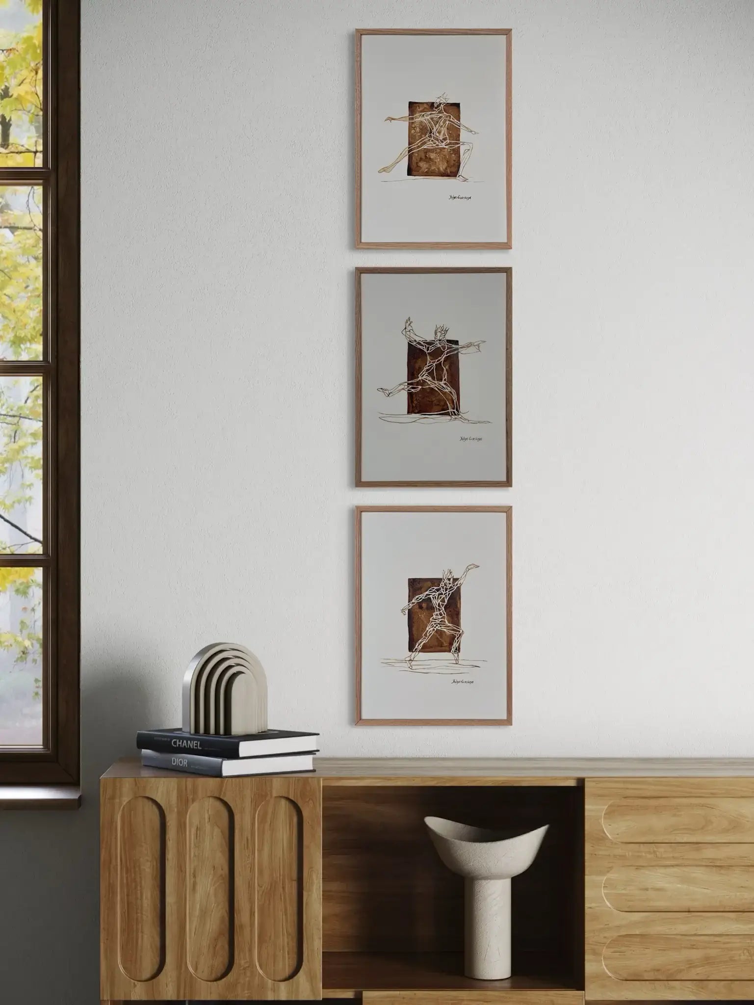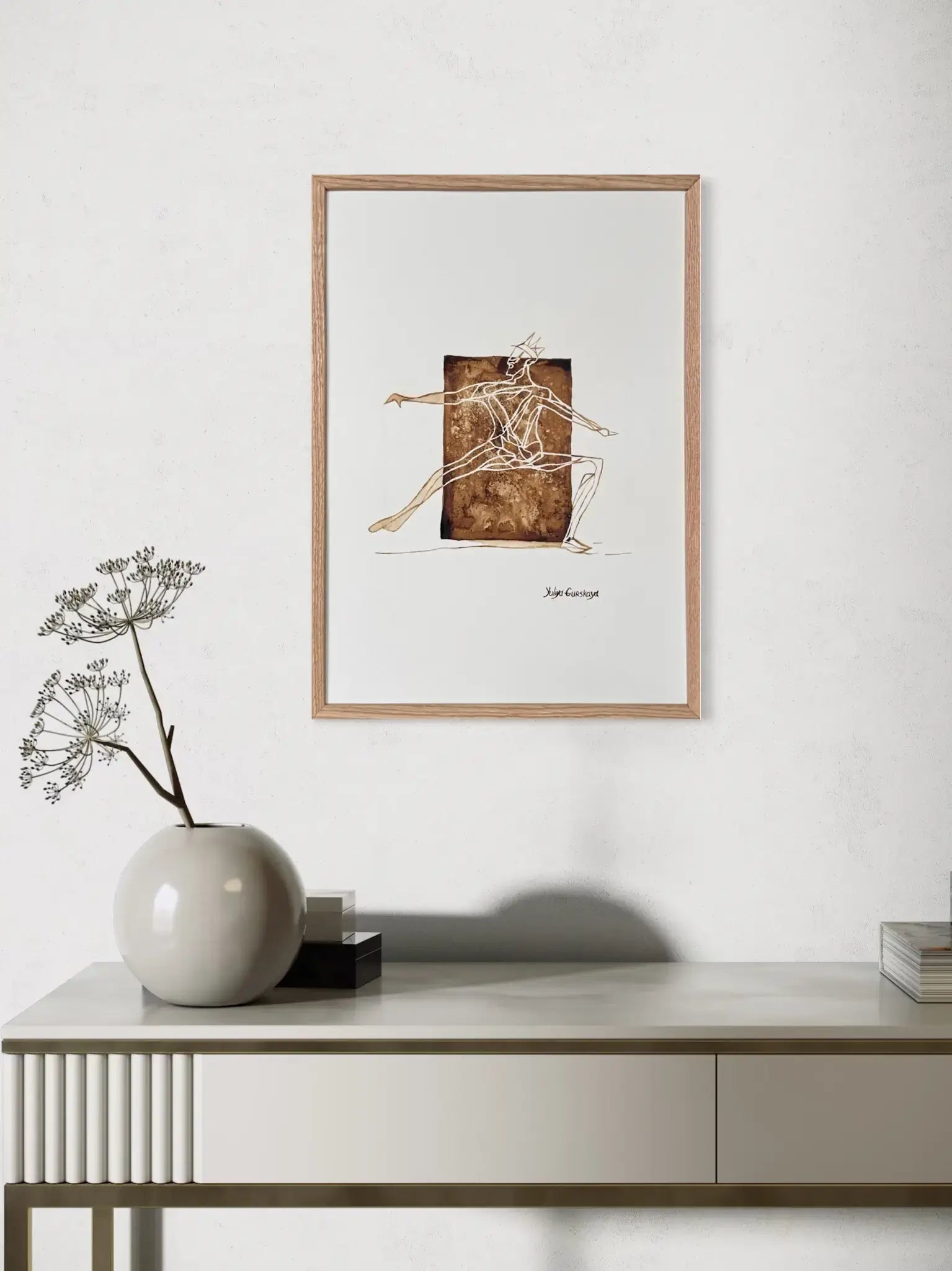 • Indrammet i træramme, med glas og passe-partout.