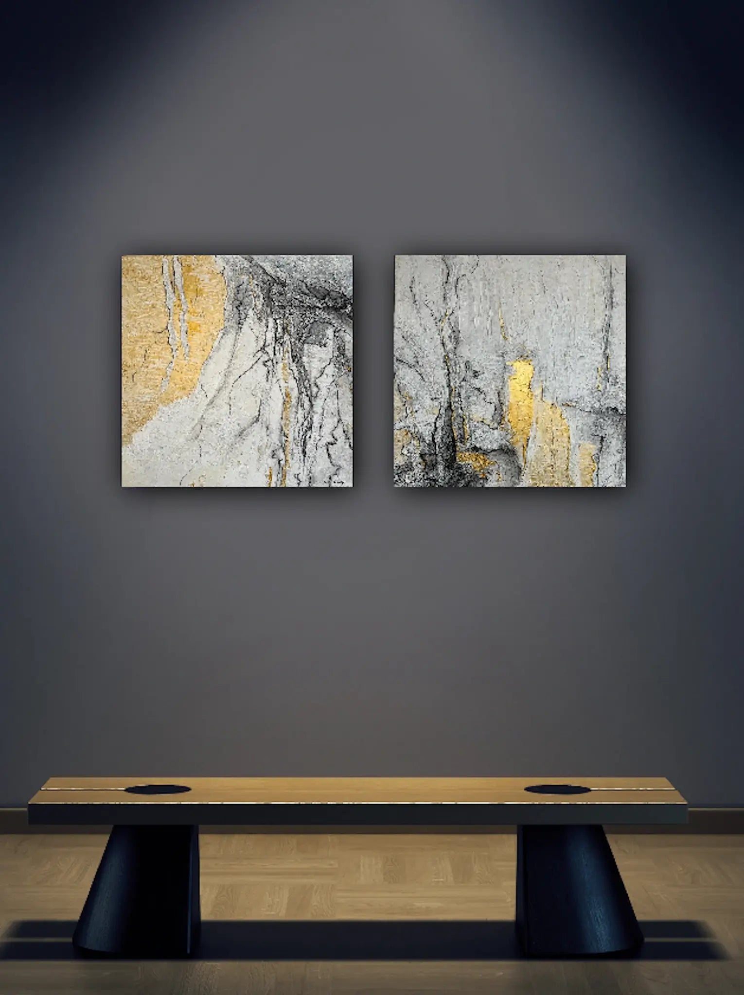 • 2-teilige Arbeit. Abmessungen jedes Teils: 60 (B) x 60 (H) cm