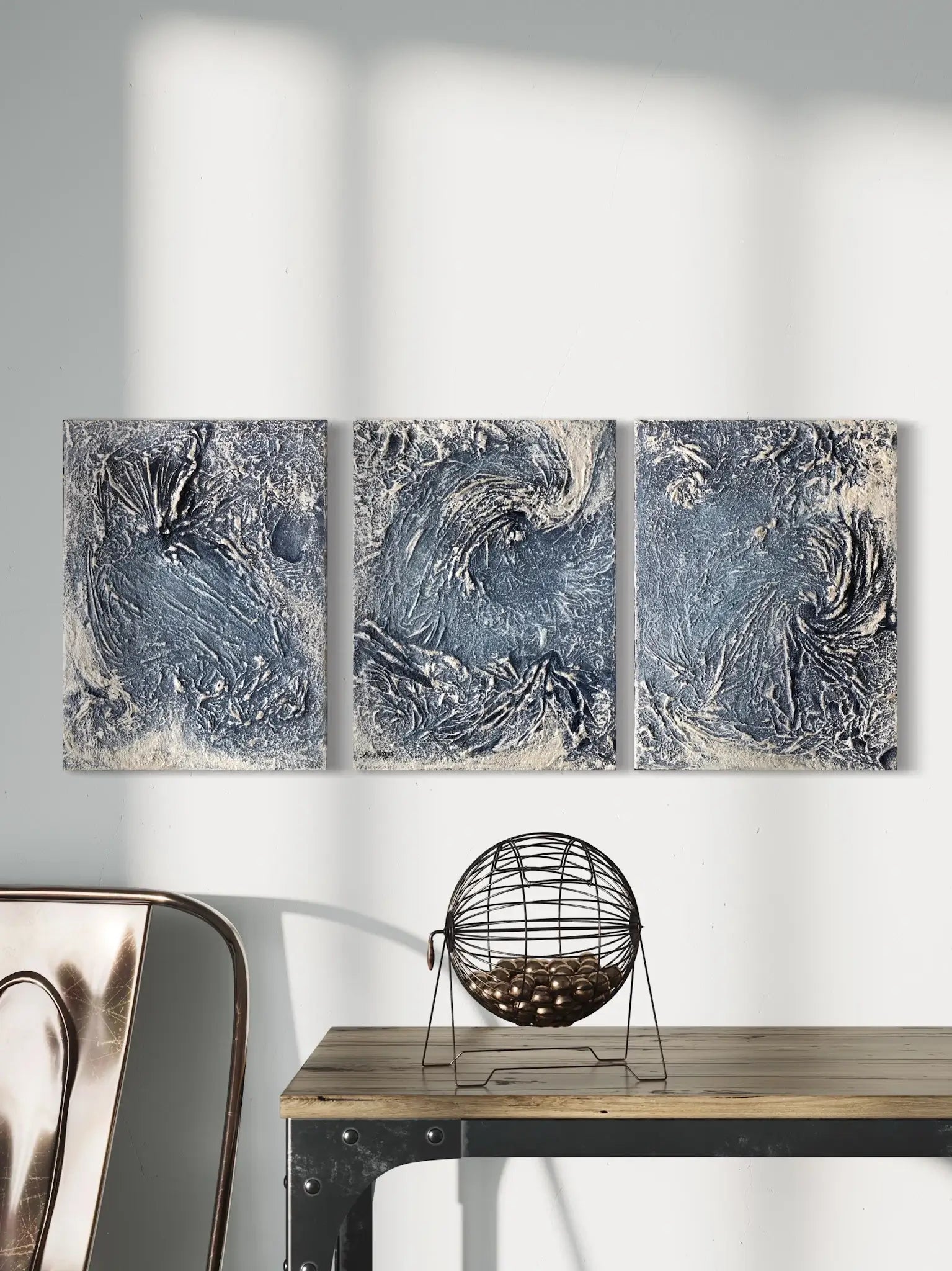• 3-teilige Arbeit. Abmessungen jedes Teils: 30 (B) x 40 (H) cm
