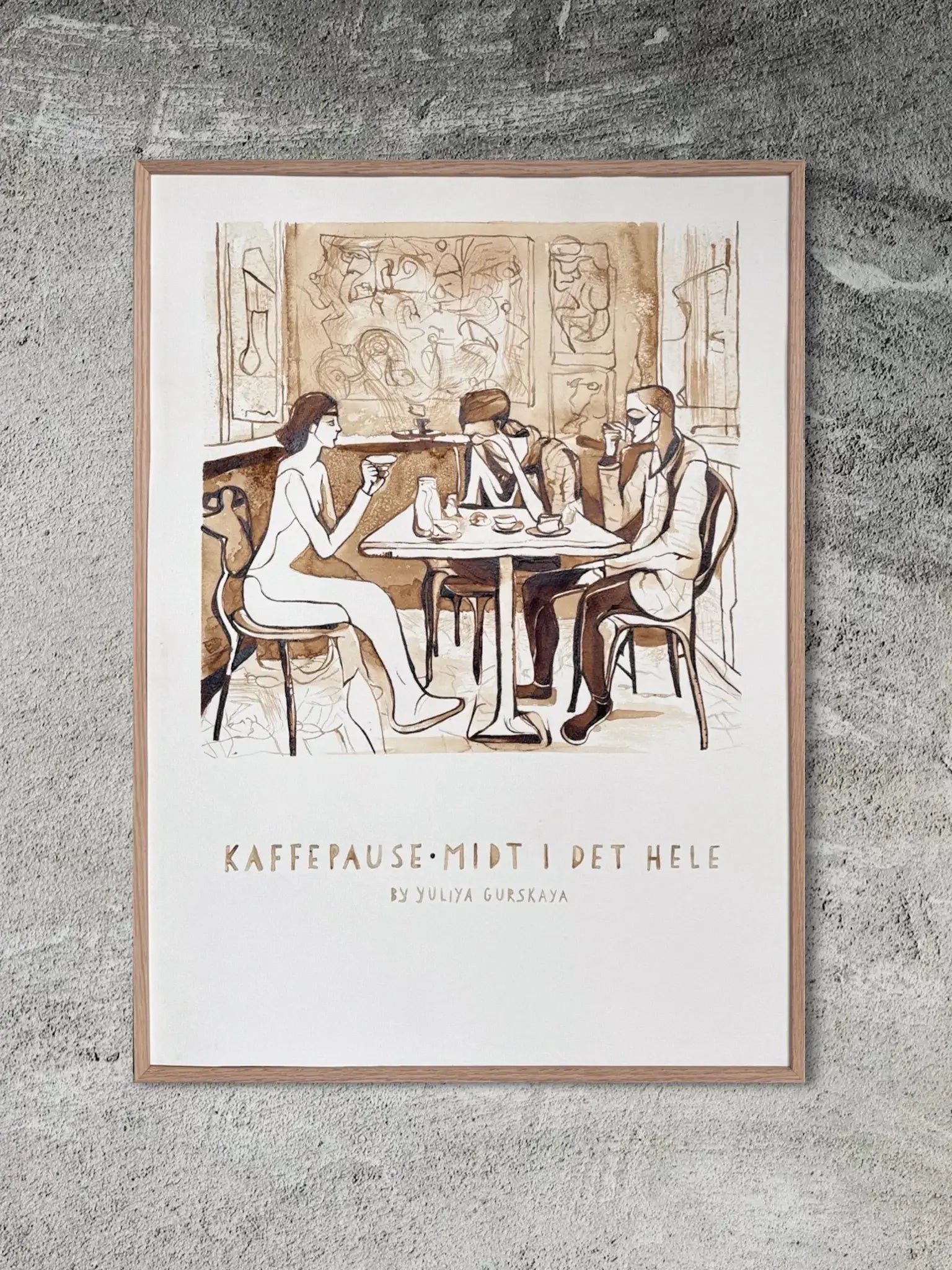 Kaffepause midt i det hele, 50(b)x70(h)cm