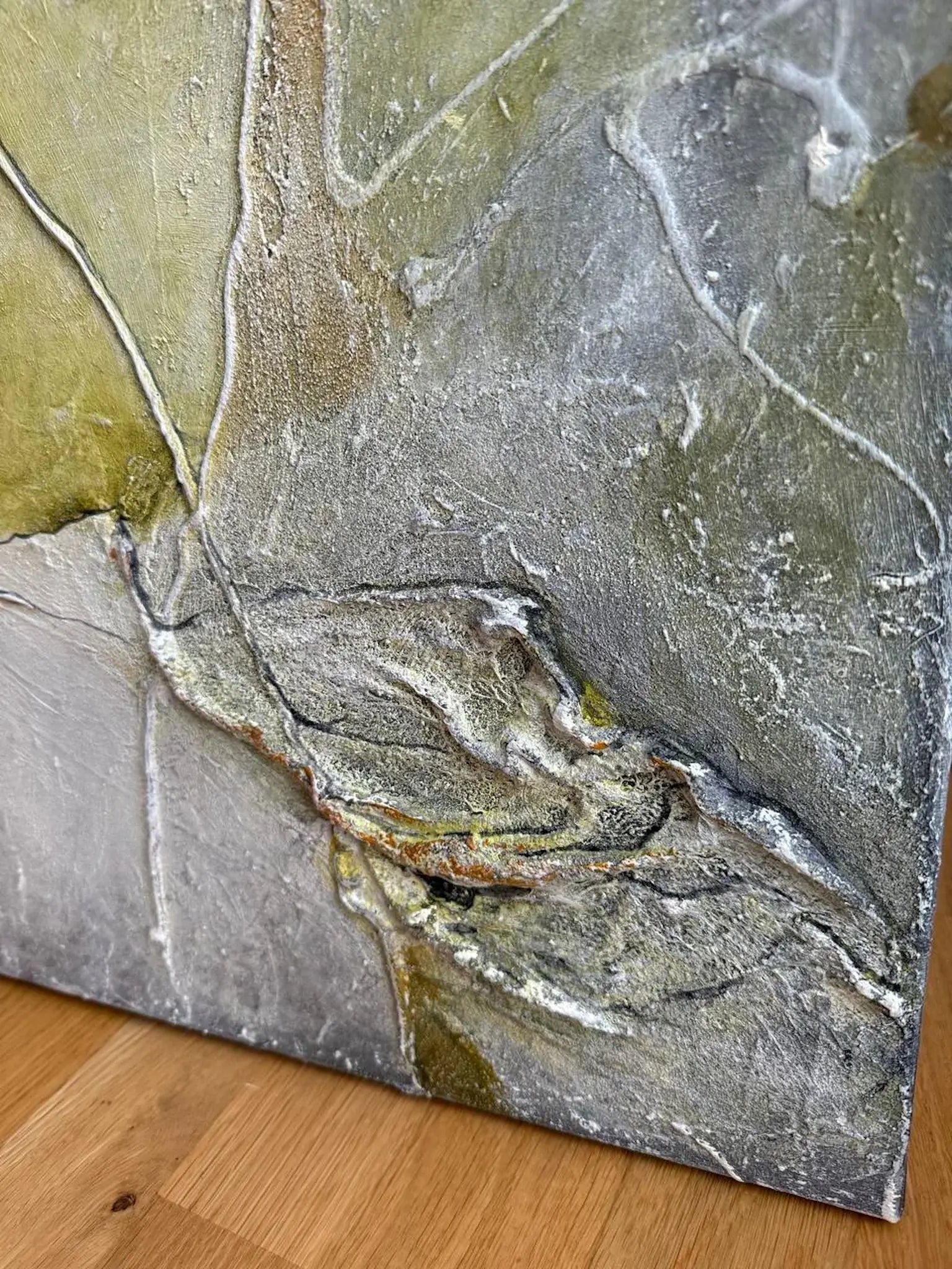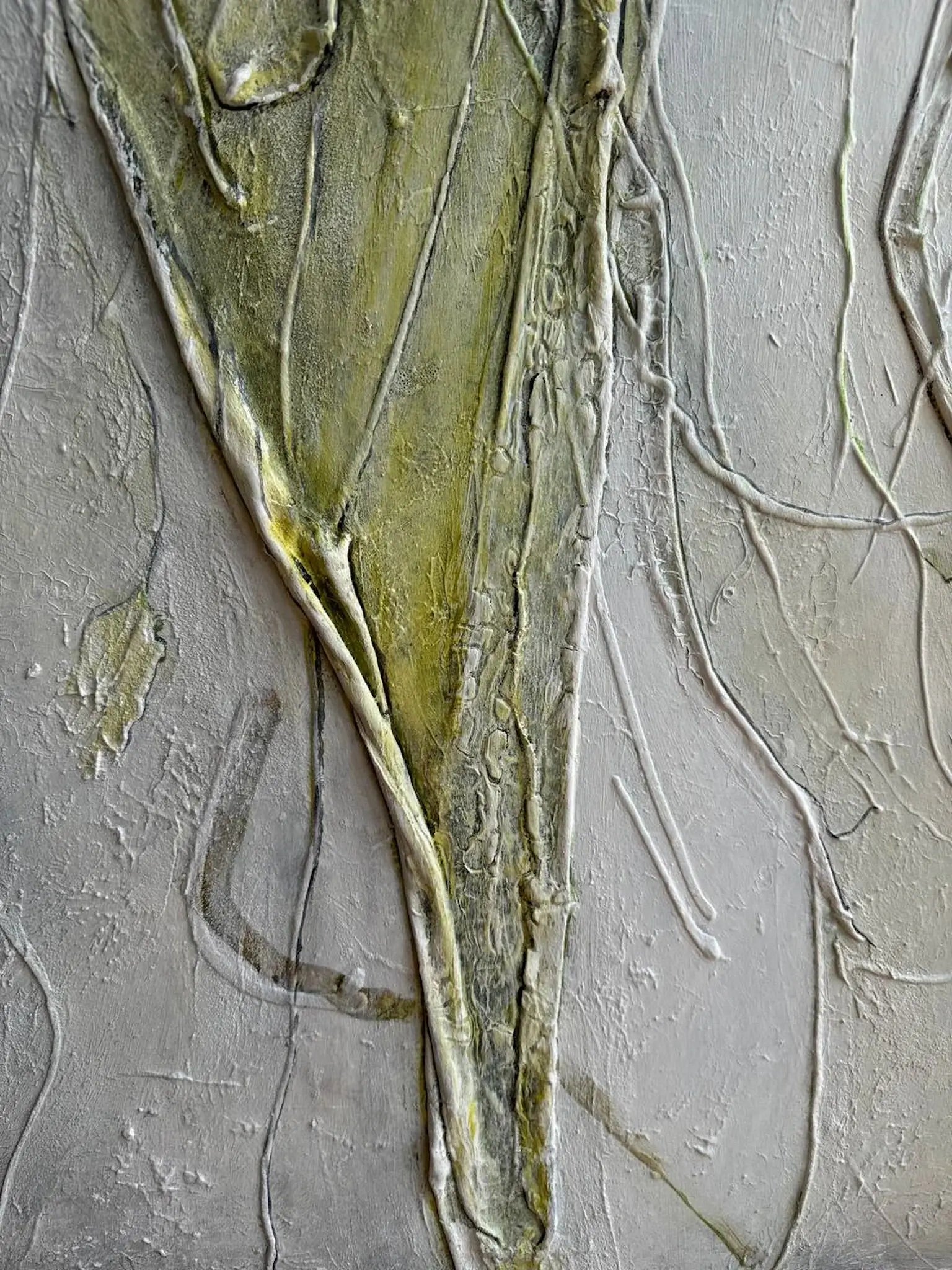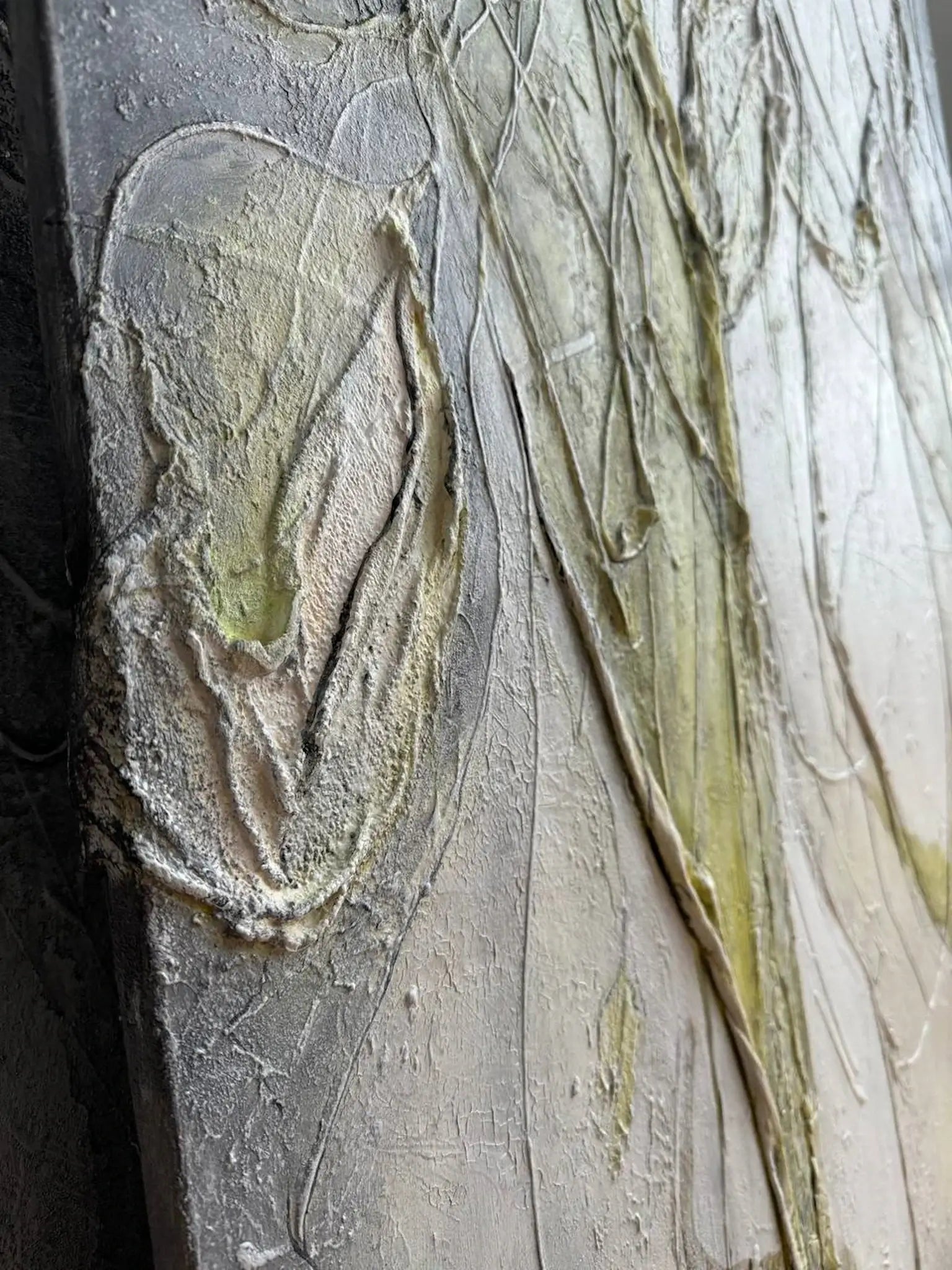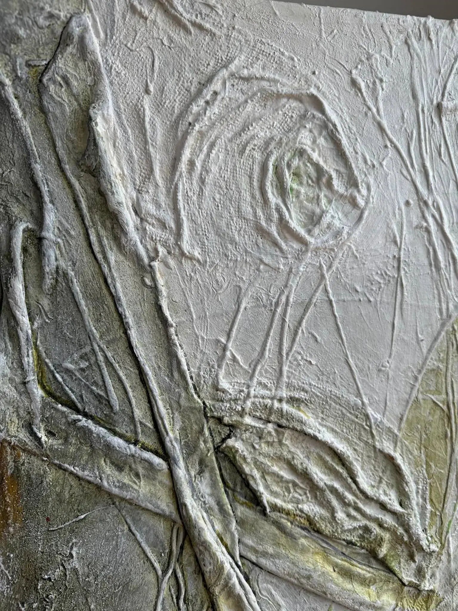 • Leinwand, Acryl, Textilien, Quarzsand, Schutzlack.