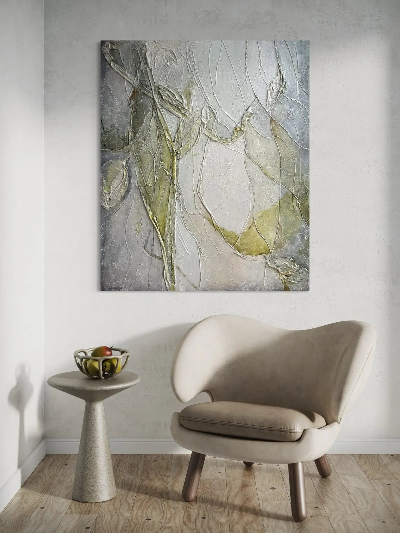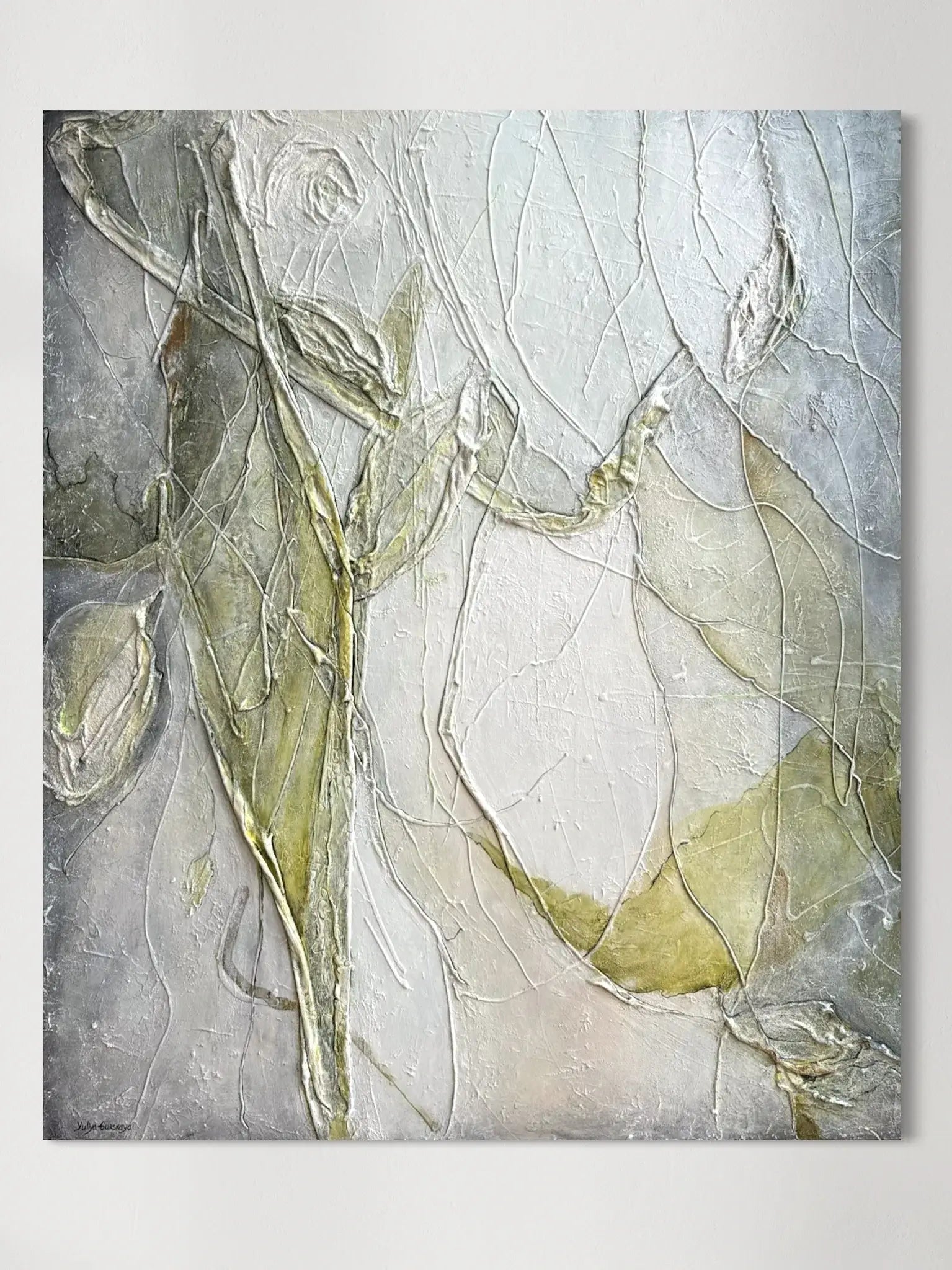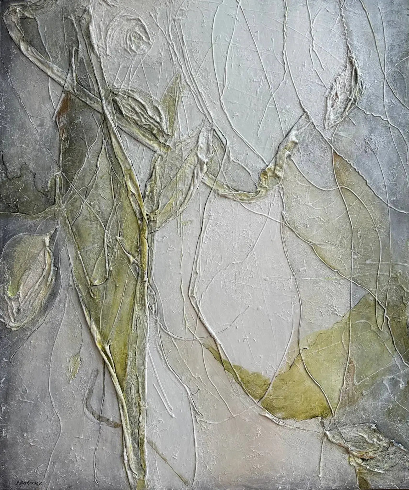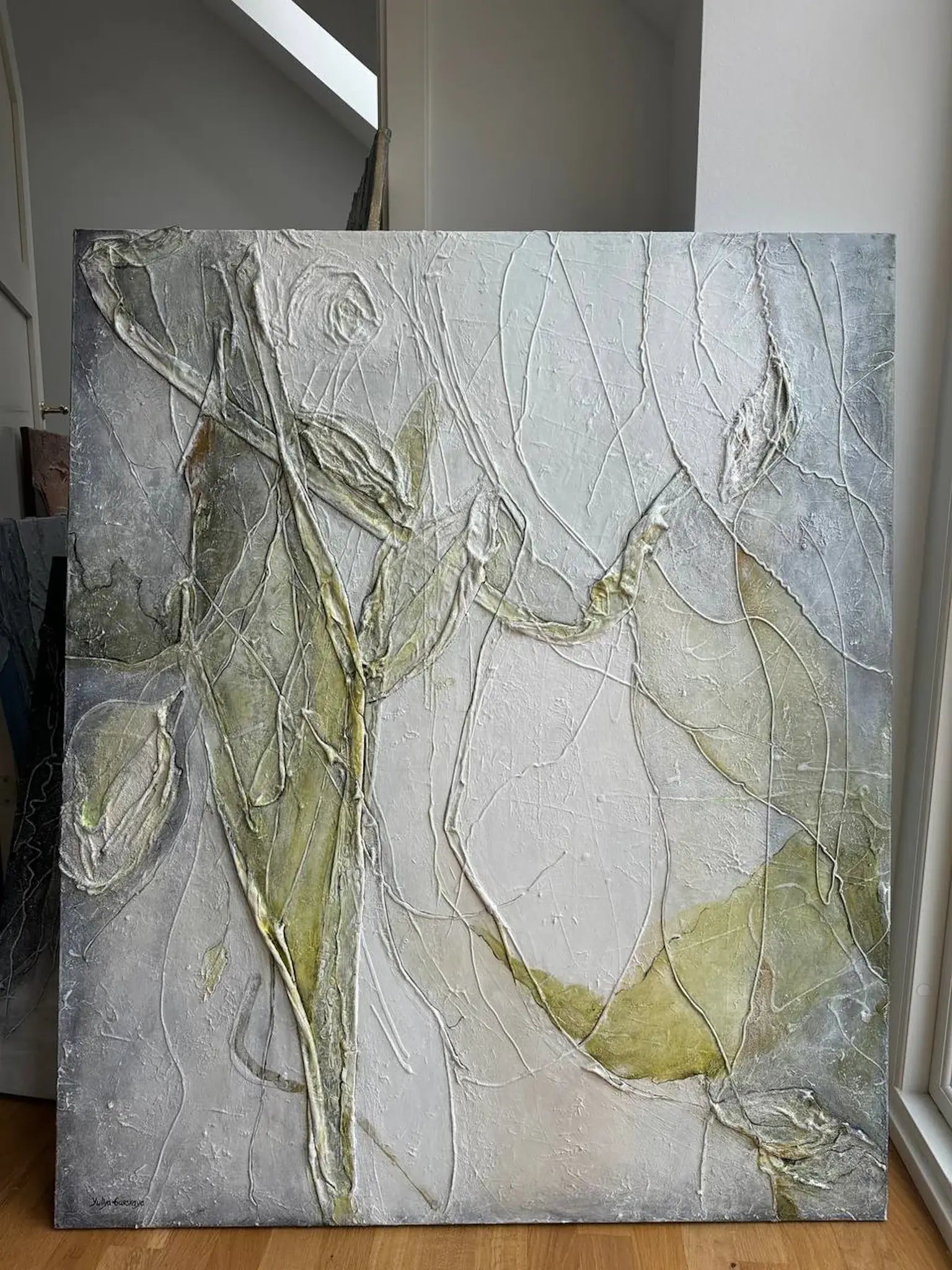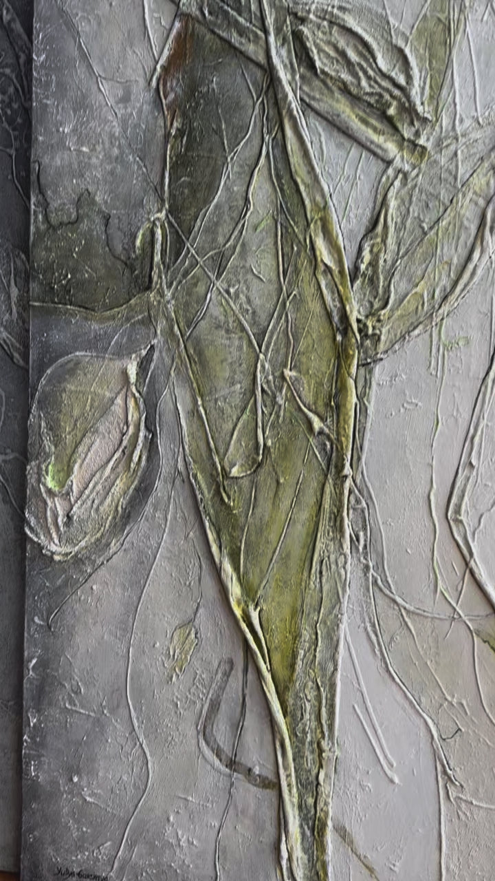 • Leinwand, Acryl, Textilien, Quarzsand, Schutzlack.