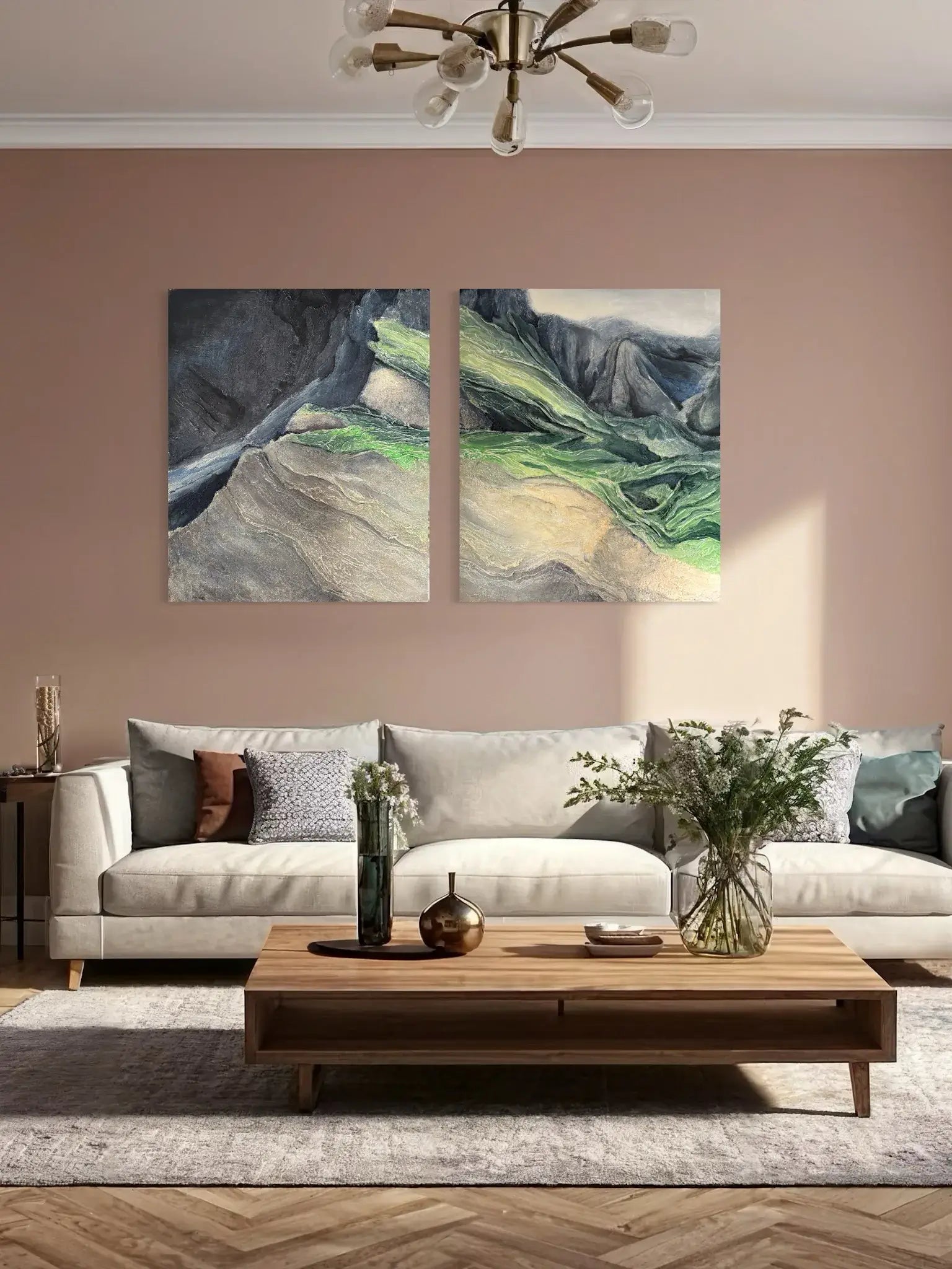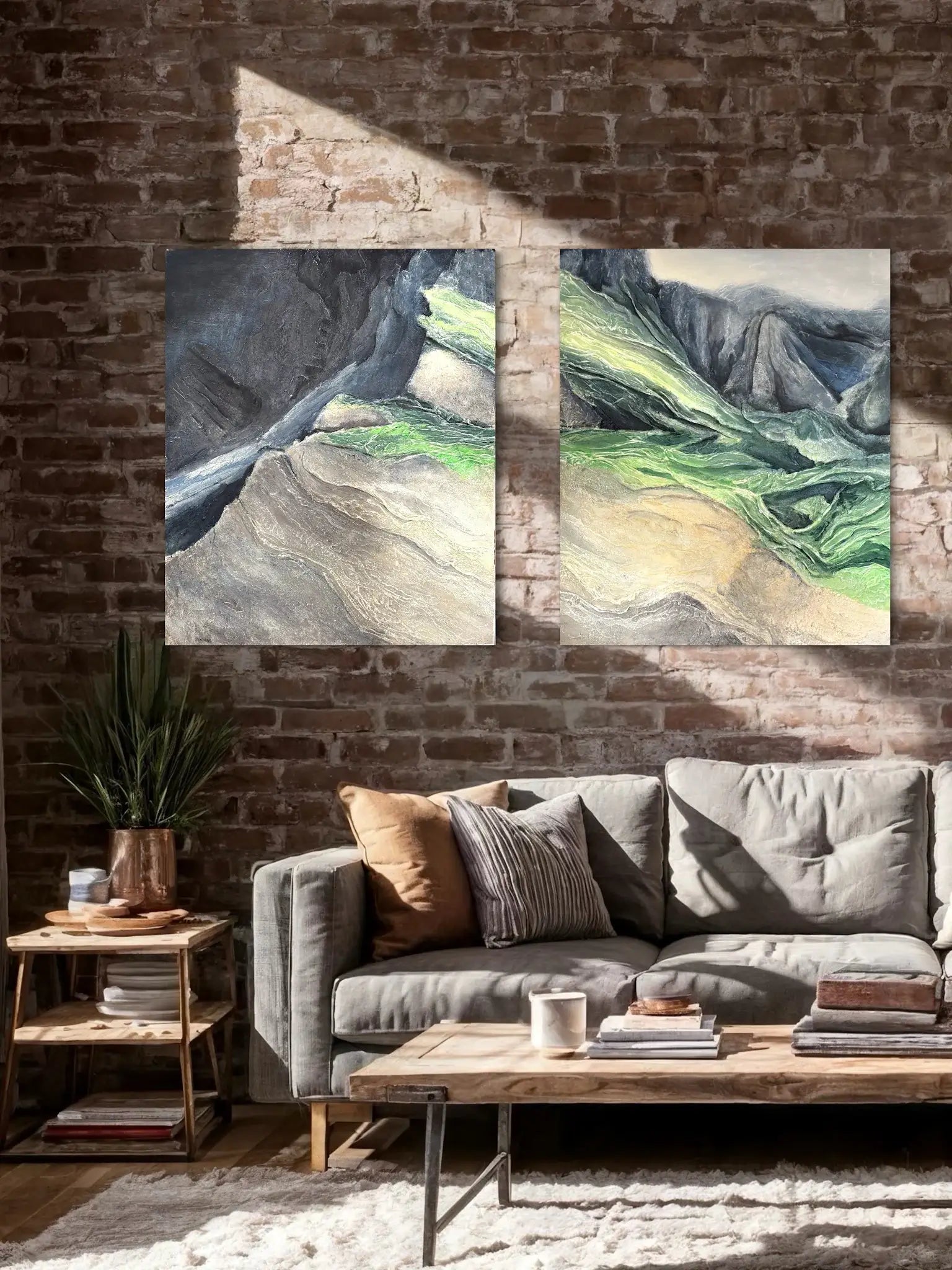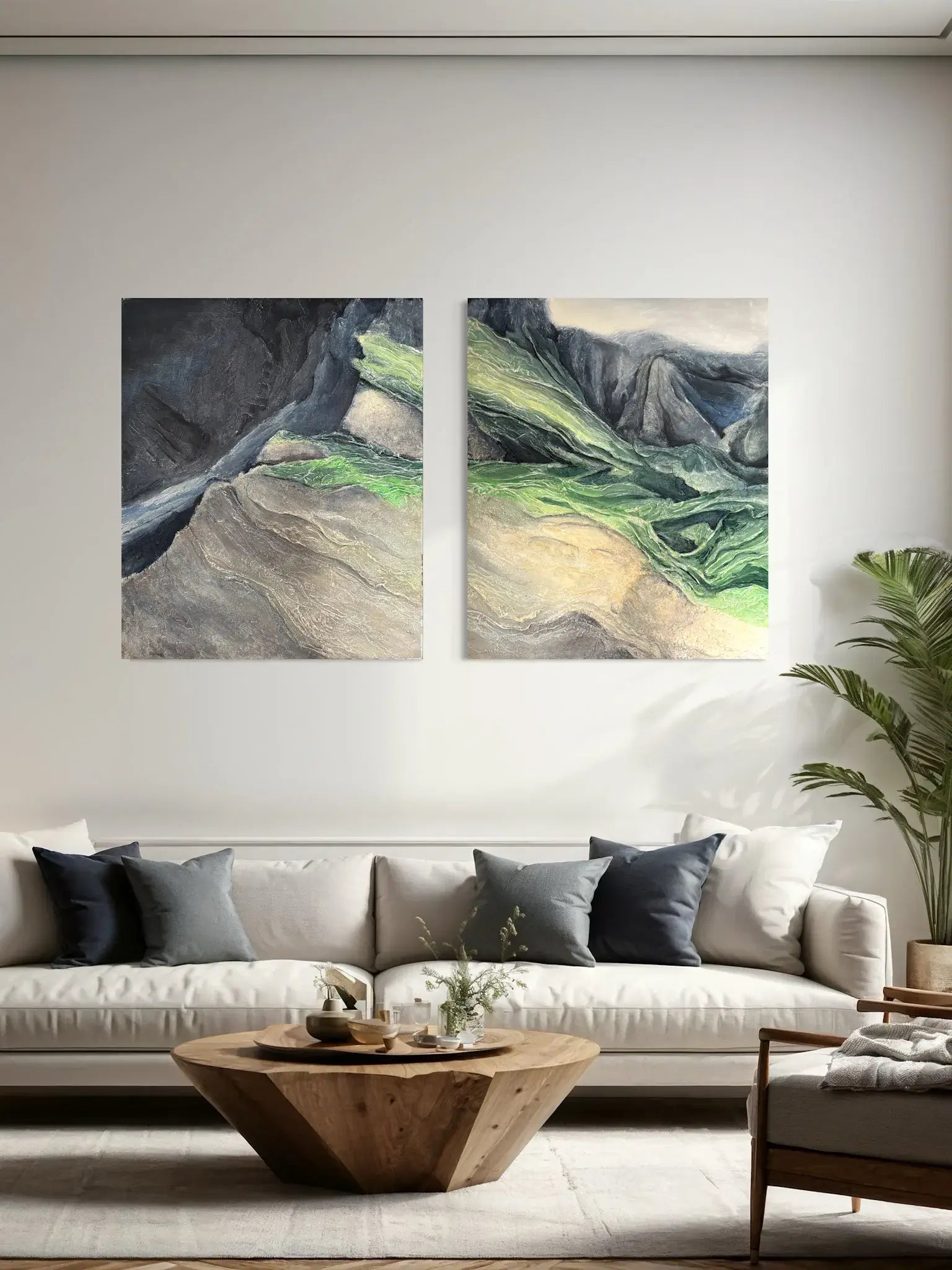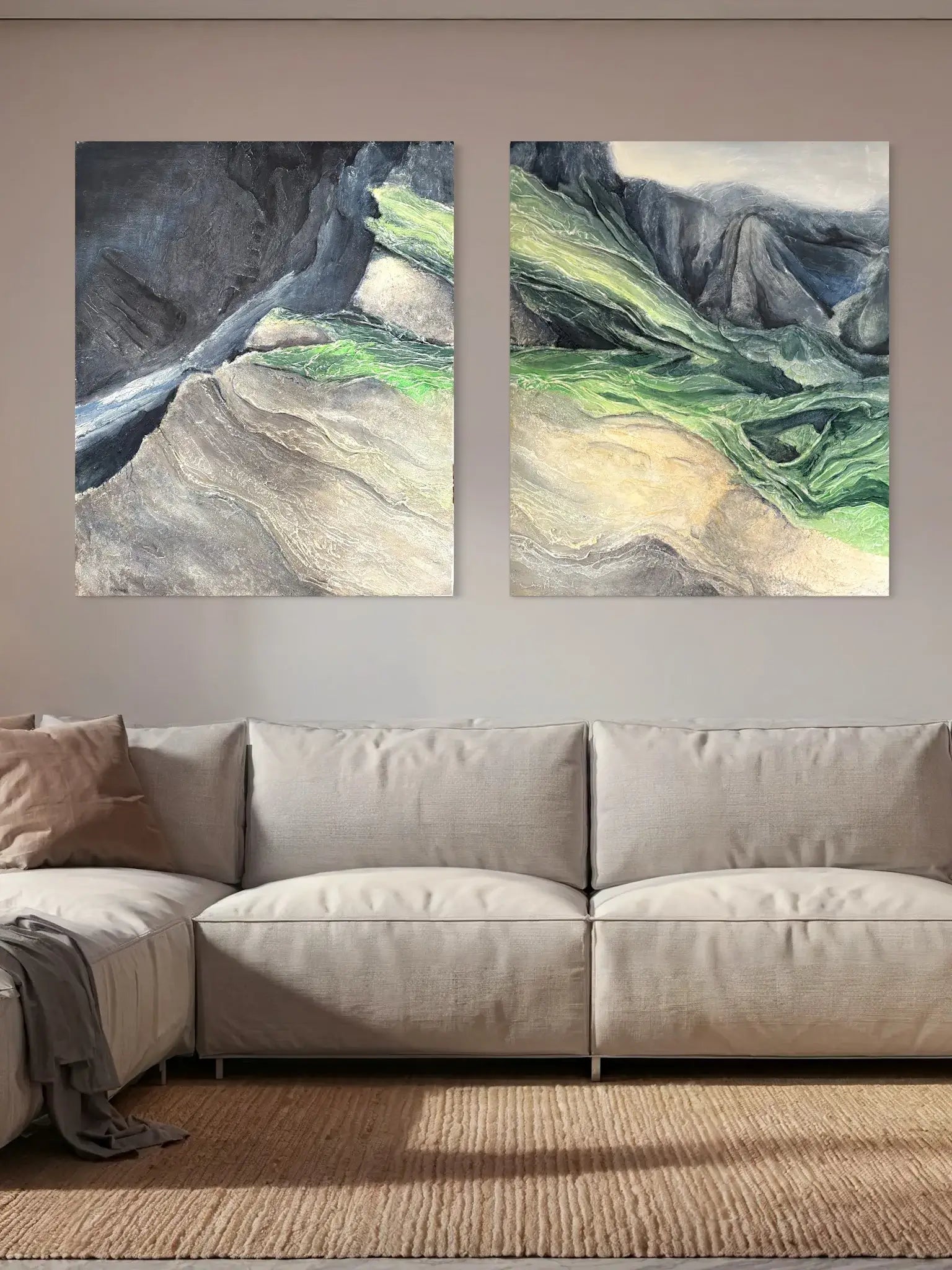 • 2-teilige Arbeit. Abmessungen jedes Teils: 100 (B) x 120 (H) cm.